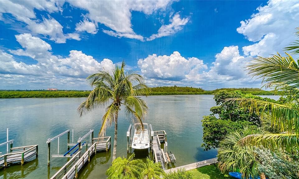 SELLER SAYS' "BRING ME AN OFFER". Breathtaking views await from this waterfront paradise on serene South Siesta Key. Your home is located on a deep-water channel that leads directly to the intracoastal waterway. Delight in the spectacular marine views and the Jim Neville Marine Preserve from all levels of this free-standing waterfront home. Watch dolphins and manatees from your living room, bedroom or from one of three screened lanais. Walk out to your private boat dock with a 10,000-pound lift or relax by the waterfront community pool. With full views of the Preserve, see bald eagles, osprey, great blue herons, and plenty of jumping fish. Use the community kayak and paddleboard launch to explore the mangroves and preserve. Welcome to Siesta Bayside South – a six-unit condo complex nestled at the quiet end of Siesta Key. Your townhome has 3 bedrooms and 2 ½ baths. There is an oversized screened balcony off the living room for indoor-outdoor living. Wake up in the main bedroom with your private 18’ x 10’ screened lanai to watch the sun rise over the water. All bedrooms have tray ceilings and ceiling fans. This fantastic property is being sold with most furniture. A 25’ Harris Kayot Legend deck boat is also available. Your home comes with an oversized two car garage with walk-out to a third screened lanai that is perfect for grilling and accessing the pool and dock. The garage has plenty of storage for all your water toys. Turtle Beach is located just ½ mile away. There is 3-month minimum rental period and pets are welcome here. With deep water and no fixed bridges to the Gulf of Mexico, this property is perfect for enjoying Siesta Key’s outdoor life.