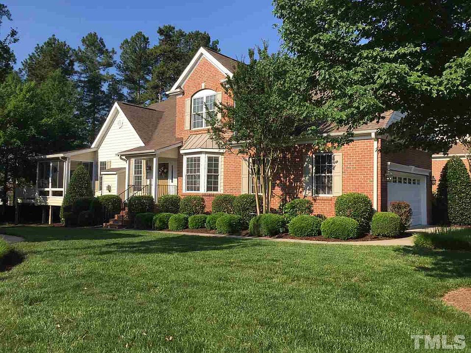 JUST REDUCED!! Popular end unit carriage home in Brier Creek Cntry Club. Walk to pool, tennis, golf, club/dining. Gourmet kitchen w/granite, new gas cooktop, oven + convection microwave, and newly finished cabinets. 1st flr mstr , walk-in closets, + jetted Jacuzzi tub. 1st flr laundry room. Loft w/skylights and ceiling fan + 2 addl bedrooms & walk-in storage on 2nd flr. Beautiful sun room off living room with dedicated HVAC. Tankless water heater in crawl space.