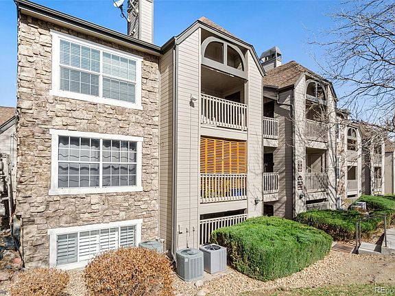 If you're looking for a move-in ready condo in an excellent location, look no further. Located a stones throw from Fiddlers Green in the highly rated DTC community, this home has everything you need and without breaking the bank. Located on the top floor, you won't have to worry about noisy neighbors above you. As you enter you'll notice the updated high end laminate flooring and baseboards that extend throughout. The living room is the perfect place to relax after a long day, and the wall above the mantle has been wired for a mounted TV to keep those unsightly cords out of view. A dining area can be found beside the eat-in-kitchen, allowing you to choose between a formal sit down meal, or a drink/snack at the breakfast bar. The lighting fixture in the dining area is brand new as are all the fixtures throughout. The kitchen includes tile, double-sided, glass window cabinets, and all new appliances (2021-2022. Stove is not new). The furnace/AC are both brand new as well, so no need to worry about them giving out on you when you really need them. The temp is controlled via a Nest Smart Controller. You'll be happy to know the master is an en-suite bedroom w/ a full bath for added convenience. The laundry room w/ a stacked washer/dryer is also located by the master bath making laundry day a breeze. When you're ready for some fresh air, head out to the covered balcony patio via either the master bed or the living room. Not only is the private balcony a great place to relax, but there's also a storage closet to take advantage of. The community includes a clubhouse, park, pool and fitness center, and they also cover sewer, trash, water and snow removal. Bus and light rail are a short walk, and I-25 is a 1 minute drive. With all of this plus parks, trails, shopping, entertainment, good schools, restaurants and so much more nearby, there's nothing missing from this home other than you. Schedule your showing today!