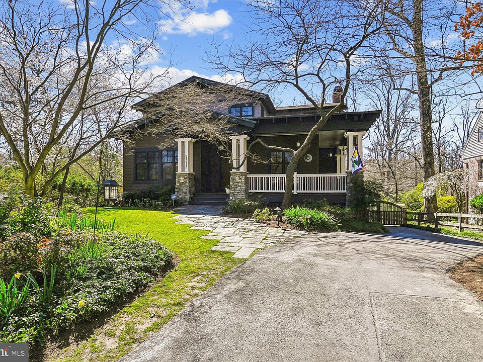 Welcome to this stunning custom residence nestled on a cul-de-sac, in a beautiful tree lined neighborhood in Silver Spring. This beautiful yet unassuming Craftsman style home was the 2001 Best in Living Home of the year. Meticulously maintained by the current owner & architect for over 23 years. Simple but elegantly detailed this residence exudes charm and and true character from the moment you step onto its welcoming front wrap around porch. As beautiful as the home is on the exterior, it meets its match inside. With 4 bedrooms 3.5 Baths, an oversized 2 car side load garage, across 3 finished levels. The oversized entry door invites you to the generous foyer and main level. Starting in the foyer, a pattern of beams and columns in Oak give rhythm to the first-floor spaces. A beautiful handcrafted storage bench graces the entry hall. Formal living and front library define the front side of the main level, perfect for cozy evenings or entertaining guests. The adjacent elegant formal dining room sets the stage for memorable gatherings, Then together, the expansive Chef's kitchen opens to the family room and serves as the heart of the home for everyday living. The Chef's kitchen features stone countertops, Cherry stock cabinetry in the Art and Crafts style, a six burner gas cook top & S.S appliances. A wonderful baking countertop is a marble countertop, while the back wall is finished in white subway tiles. Small windows on either side of the gas stove top provide natural light and give visual interest and definition to the room. An inviting island with seating plus a generously sized breakfast area enhance the space. The separate laundry area off of the kitchen also provides additional counter space and storage with access to the rear and side garden. The cozy family room with its warm tones features custom cabinetry, a wood burning fireplace, and coffered ceilings, the perfect combination of elegance & functionality. Tile work incorporated in the fireplace echoes another typical Arts and Crafts motif; Next to the family room, access the wood deck overlooking the rear garden. A perfect spot to enjoy your morning beverage. The primary main level bedroom suite is the perfect place to unwind and relax. With a gas fireplace and radiant heat floors. The large spa like bath also features radiant heat floors, a soaking tub, a glass door-less walk-in shower and separate his and hers furniture like vanities with green Avonite countertops. The second level. encompasses three spacious bedrooms, a wide hallway can act as a study area. The hall full bath has a separate tub and water closet, as well as two vanities with storage cabinets and linen closet. A finished lower level adds even more space for recreation and is ideal for family gatherings, A separate open room can be used as a fitness area, office or 5th bedroom. A full bath, and extra storage rooms complete the lower level. Access to the oversized garage and additional storage area are on this level. This home brings community and all the benefits of downtown Silver Spring. Entertainment, library, transit retail and grocery stores. A block away from Sligo Creek Park where you will find walking paths, Playgrounds, and tennis courts. Be warm, be welcome be at home!