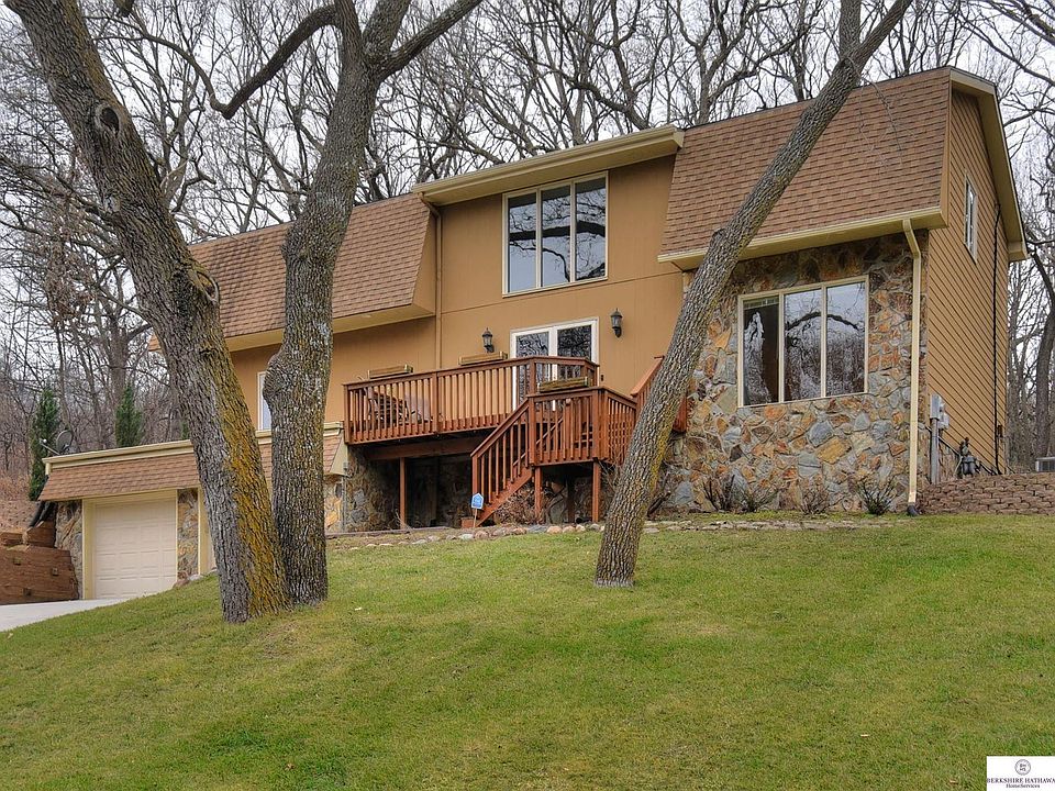 Come see this 4 bed 3 bath home with no direct neighbors in front or behind you! You will be welcomed into this home with a double front door & two story entrance. But wait, that's not all! Fall in love with the interior features, two living rooms on the main floor, a beautiful stone fireplace, and more! Some bonus features include main floor laundry, a wet bar, sauna, 3 large decks, and new flooring throughout. The large kitchen contains an ample amount of cabinet and granite countertop space and stainless steel appliances. All 4 of this home's bedrooms are very spacious. The primary bedroom boasts a deck and large walk-in closets. This home is the perfect place to entertain! The basement contains a finished living room, and extra room to be used for an office, playroom, or even a bedroom. Also enjoy the backyard's pool or gazebo with a hot tub. This home truly has a park-like setting with many trees and wildlife located in Raven Oaks. AMA.