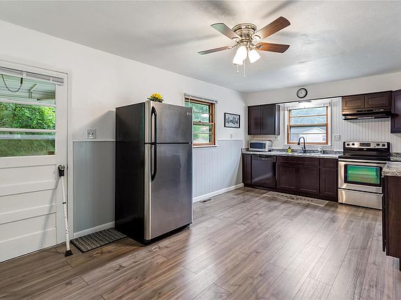 Embrace natures beauty in your own back yard! This .750 acres property backing to woods has been newly refurbished with attention to details. Hosts an oversized garage/workshop area for equipment or extra storage space. Comes with all stainless steel appliances with a brand new kitchen! Comes with a Home Warranty plan. Selling AS-IS.