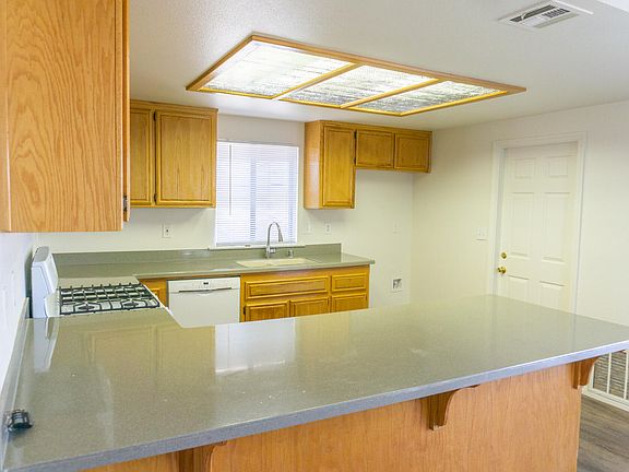 North side location just waiting for you. Completely renovated. Just bring your family and move in today. The living room has a brick fireplace and two big windows. The dining room area has plenty of room for furniture or, in the alternative, it could be used for a computer/homework space for the children. The sliding glass door gives access to the covered patio and backyard. The kitchen has a big breakfast bar/island, plenty of storage, new stove, microwave and dishwasher. The reno includes new paint, vinyl plank flooring and blinds throughout. There are now faucets-fixtures in both bathrooms and kitchen. The garage has been painted as well. This is a great location within walking distance for the children to catch the school bus. All this and natural gas too.