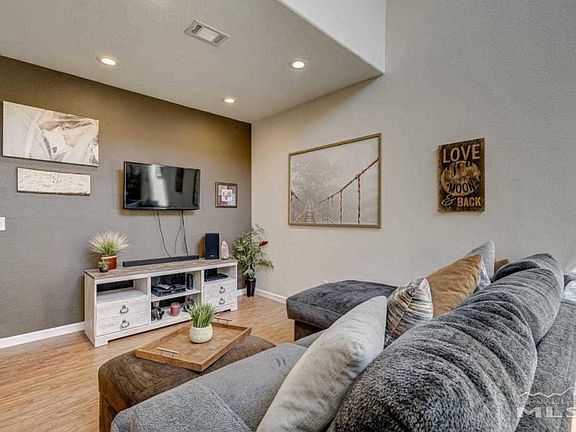 Light and airy turn key home boasts an open concept living + dining + kitchen area that opens to a beautifully maintained paver patio and garden. Perfect for entertaining year round, but especially those summer BBQs! Oversized walk-in master closet is more than ample storage, and laundry upstairs makes this home so convenient. Close to the 580 on/off ramp as well as major shopping areas, the North Valleys Sports Complex and Splash Pad make this home an incredibly ideal location. Don't miss this home!