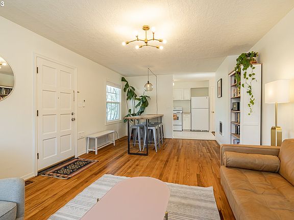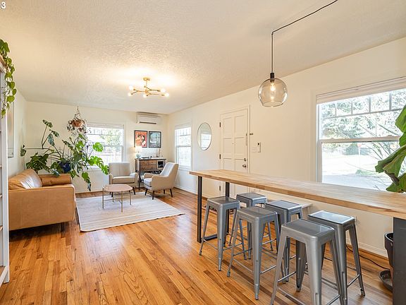 Flavor: Extra Special! Not your typical 1st time home buyer house. Something magical happens at 1000 +sf - there's room for a more interesting floor plan. A luxurious large living room, 2 sets of French doors for that important outside connection, a DR overlooking the yard & a primary w/flex space for an office, cozy book nook or TV spot. Many delights - remodeled bathroom, HW floors & an energy eff mini split for heating & cooling are just a few. Explore your ADU dreams-oversized corner lot! [Home Energy Score = 6. HES Report at https://rpt.greenbuildingregistry.com/hes/OR10212770]