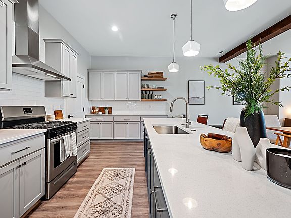 - Features: Builtin Range, Dishwasher, Island, Microwave, Free Standing Refrigerator, Laminate Flooring, Quartz