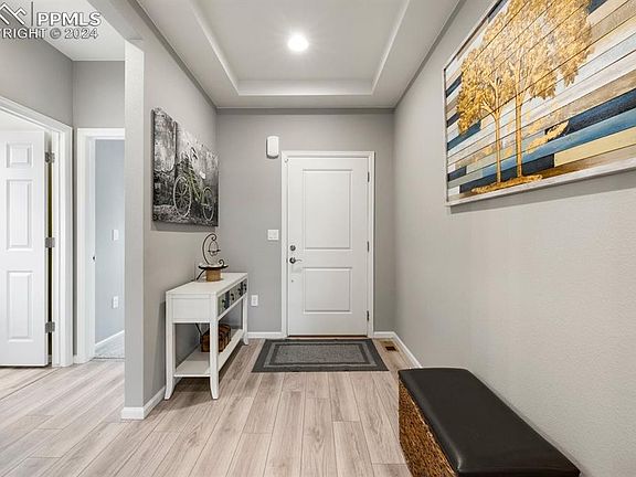 Welcome to your dream home in the highly sought-after Banning Lewis Ranch! This stunning 2 bedroom, 2 bathroom ranch-style home is a haven of comfort and elegance, offering a lifestyle filled with modern conveniences and community amenities. Step inside to discover a bright and airy open-concept layout, bathed in natural light from the abundance of large windows throughout. The heart of this home is the eat-in kitchen, featuring sleek quartz countertops and top-of-the-line appliances, perfect for culinary adventures and casual dining. Adjacent to the kitchen, you’ll find a versatile space that can serve as a formal dining room or a home office, catering to your lifestyle needs. The massive unfinished basement offers limitless potential, ready to be transformed into additional living space, a recreation room, or storage—whatever suits your imagination. Step outside to enjoy your private oasis. The huge stamped concrete patio is perfect for entertaining or simply unwinding, while the meticulously landscaped yard adds to the charm and curb appeal of this exceptional property. Living in Banning Lewis Ranch means more than just owning a beautiful home; it’s about embracing a vibrant community. Residents have access to a wealth of amenities including an aquatic center, multiple pools, a state-of-the-art gym, tennis courts, pickleball courts, dog parks, and more. Enjoy farmers markets, concerts in the park, and top-rated, award-winning schools right within your neighborhood. Don’t miss the opportunity to make this exceptional property your forever home. Experience the perfect blend of luxury, convenience, and community at Banning Lewis Ranch!