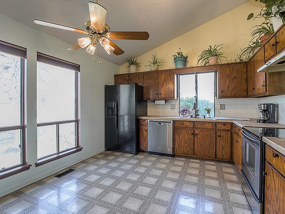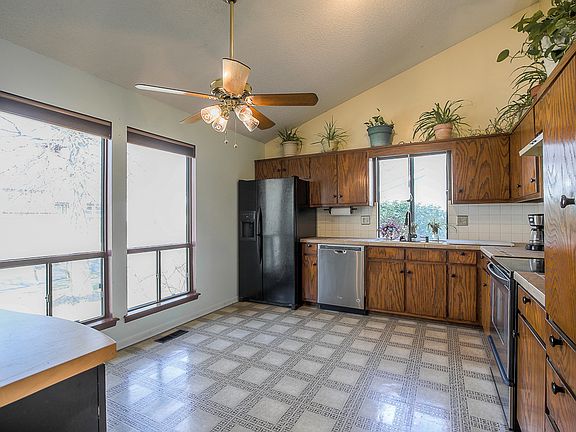 Start spring here! You will love this layout with cool vaulted ceilings, skylight, fireplace & loads of living space! Easy maintenance vinyl siding, new roof, maint-free oversized deck and fenced backyard. Master suite with vaulted ceiling and private bath with slate tile. Kitchen has lots cabinets, pantry, big windows, stainless stl appl, new dishwasher, refrig stays. Nice sized mudroom or sunny craft area is a perfect drop zone with backyard access. Spacious tiled family room in lower level with wet bar and den.