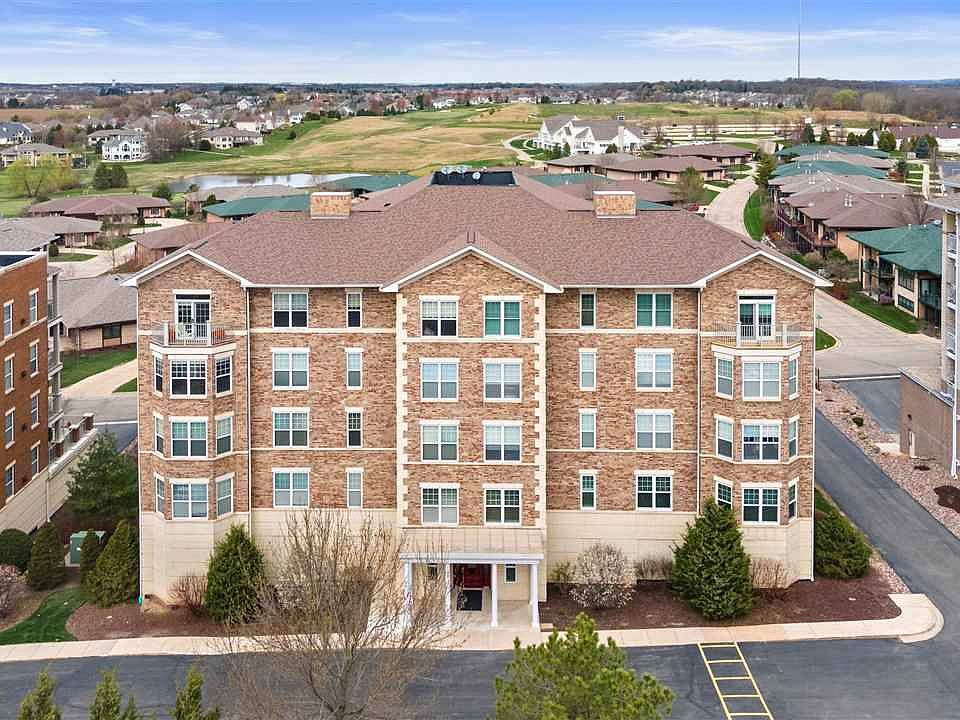 Gorgeous views of the golf course from this 4ths story unit. Vaulted ceilings, high-end kitchen finishes, with lots of extra storage awaits in this well appointed model. Brand new A/C and furnace. 2 year old washer and dryer. Extra large storage in the parking garage, sturdy shelves included. 2 heated parking spaces adjacent to the elevator. Please enjoy this bright condo. Move in and make it yours!