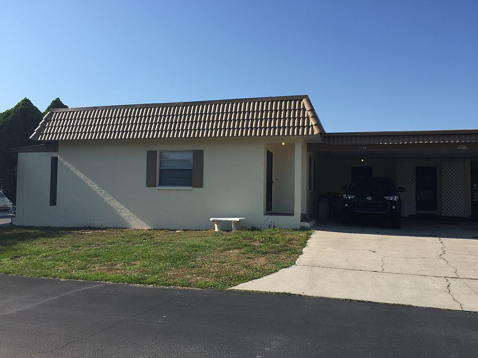 This 2 bedroom, 2 bathroom, 1 carport villa, has NEW tile flooring throughout, NEW interior/exterior paint, NEW backsplashes, NEW water heater and NEW dishwasher. No age restrictions, close to the community pool and shuffleboard courts. HOA is only $42 per month. Minutes from Trinity hospital, restaurants and shopping. Seller never occupied property. All room dimensions are approximate and should be verified by buyer.