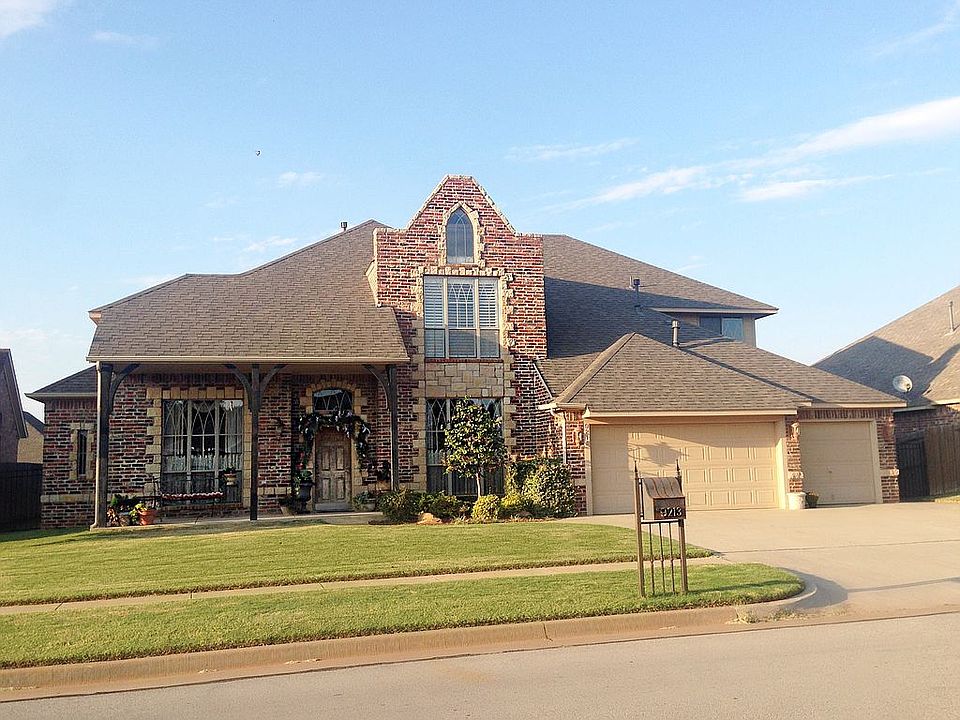 Beautiful five bedroom home in the Mustang school district with Oklahoma City utilities. This one owner home has an open floor plan with a large, beautiful kitchen with island and dining area, dedicated office, formal dining, and spacious living with 20 ft. ceilings. The downstairs also has a large master bedroom and master bathroom with separate shower and jetted tub, along with large master closet with ample shelves and built in dresser. A large bedroom with walk in closet, one full bath, laundry room and mud room are also located on the bottom floor. Upstairs has 3 bedrooms with walk in closets, 1 full bathroom, theater room and game room. This home has upgraded woodwork and cherry stained cabinetry, along with custom shutters and custom window treatments.