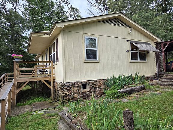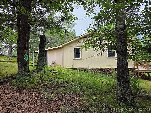 Welcome to your very own slice of paradise! Nestled amidst the serene landscapes of Bunch, Oklahoma, this delightful property offers 7 acres of lush pastures and tranquil surroundings. Whether you're seeking a peaceful getaway or a place to settle down and cultivate your dreams, this home is sure to impress.