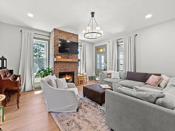 Inside, you'll find soaring 10-foot ceilings and massive windows with deep sills that flood the home with natural light. The living room is anchored by a cozy gas fireplace, while the chef's kitchen overlooks the sprawling 650+ sq ft deck—perfect for entertaining under the stars.