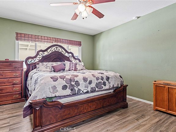 Ranch style open-planned 3 bedroom, 2 bath pool home on a family-sized lot with Gated RV Parking. Family kitchen with floor-to-ceiling soft-close cabinets and doors, quartz counters, double oven, six-burner stove, and a kitchen island open to the family room, plus extra space for a dining table. Double french doors lead out onto the covered back patio and spacious backyard with a private, solar heated pool and spa with malibu step, a firepit area, tool shed, significant hardscape and plenty of extra space for whatever your heart desires. Master has a double wide closet and both the master and second bathroom boast walk-in showers. Luxury vinyl plank flooring throughout the home. Shutters and blinds for shade. LED lighting and Ceiling fans throughout the home. Two-door three car attached garage. RV Parking large enough to accommodate 2 RVs. Former model home. Low taxes and no HOA. Short distance to the nearest Walmart, plus multiple dining and shopping options. Home is zoned equestrian. No pets or smoking in home.