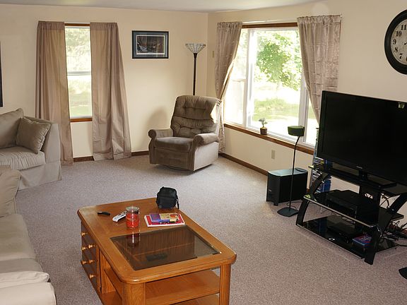 Side by side townhouse (duplex). It is a mirror image design with 3 bedrooms 1 1/2 baths, one car garage, first floor laundry, full basement and breezeway on each side. Home sits on 2.3 acres close to New London.