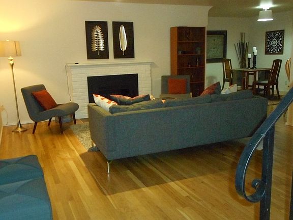 Welcome to Highland Park! This charming mid-60s home is perfect for families or a group of roommates (1670 sq ft). Four bedrooms with big closets and built-in shelves, an office/den, two full bathrooms (one on each floor), kitchen with new refrigerator, living room with a fireplace, dining area with a mini-fridge, and two back patios for entertaining. Hardwood floors and lots of light. You'll have access to a garage and shed for tools, projects and extra storage. Puppies also give this space four paws up -- the backyard is fully fenced and you're only a few blocks away from Westcrest Dog Park. Walkable to White Center restaurants, coffee shops, several playgrounds, and multiple bus lines. A slightly longer walk to Target, QFC and Starbucks. Your landlords are just six blocks away if you need anything. Great neighbors, too, if you're into making friends with the people close by. Rental review application date: August 13 at 11 a.m. PDT; property available for move-in August 27; one-year lease minimum; pets welcome with additional deposit. Property tours required for tenant selection; please schedule visit for Aug. 10-12. Renter is responsible for all utilities (garbage, sewer, water, electricity, TV/internet). We also ask that you maintain the front and backyards -- we will provide a lawn mower and other necessities in the back shed. No smoking inside please. Rent is due on the first day of every month.