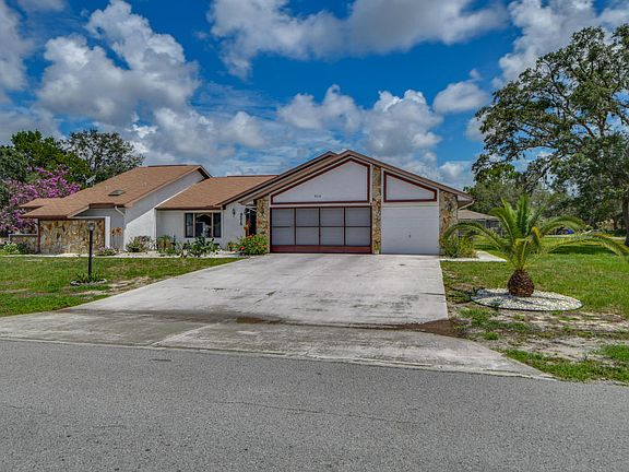Beautiful 3 bedroom, 3 bath, 3 car garage pool home located on a 1/2 acre corner lot. The screened 32x16 pool with jet seat, river rock decking and summer kitchen makes entertaining easy! Home has an split, open floor plan with vaulted ceilings in the family room and master bedroom. Master bath boasts a huge jaccuzzi tub, large shower and walk-in closets. The other two bedrooms share a full size bathroom. The third full bath is conveniently located on the pool deck. The kitchen is bright and spacious and includes a breakfast bar and nook and overlooks the family room with wood burning fireplace. Custom made blinds and shades throughout home. Home features new AC unit (2016), new dishwasher (2015), new pool screen and pool pump (2017) and painted exterior (2013). Don't hesitate! Call now!