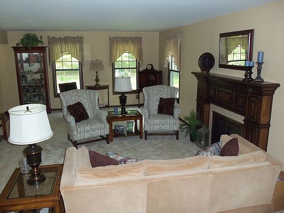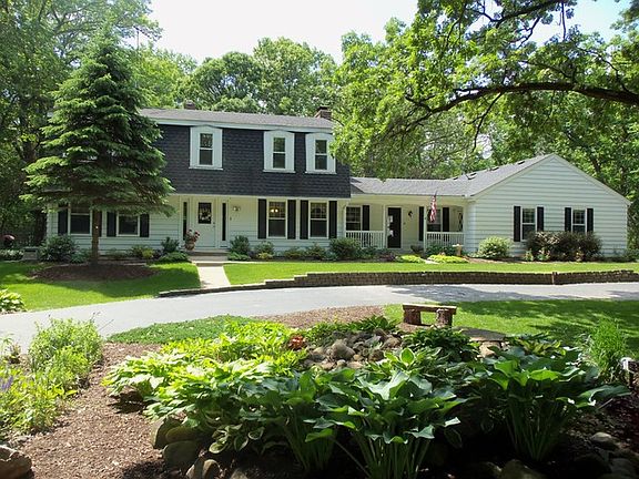 A great place to get away from it all. Secluded on 3+ wooded acres but still only minutes to I-90. The yard has pretty gardens, a waterfall and koi pond. Inside the kitchen has granite counters. The family room has a wet bar, fireplace and doors to the deck. Upstairs the big master suite has walk-in closet. The partially finished basement adds more living space with a rec room, 3rd fireplace and possible 4th bedroom.