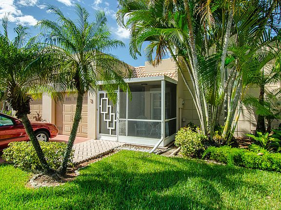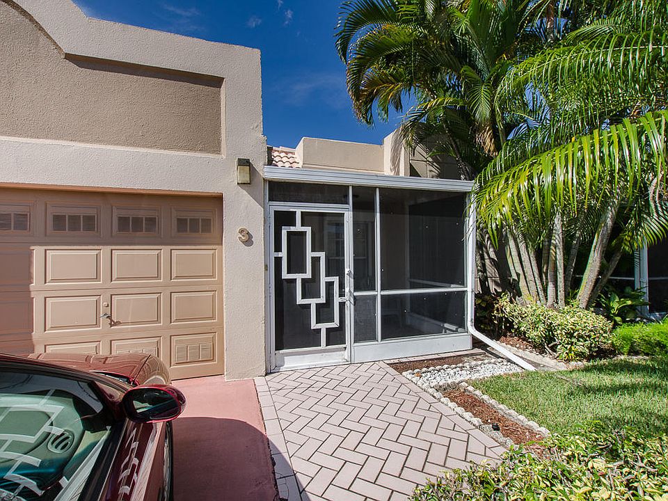 Best deal in Town Villas! Large 2 bed 2 bath Villa. Spacious open floor plan, eat-in kitchen, large living/dining room with lots of natural light. Large master suite with walk-in closet and sizable guest bedroom with 2 closets. Both bathroom vanities are updated, new light fixtures, and tile throughout (except bedrooms). The villa includes laundry inside, screened-in patio & porch, storm protection roll down shutters, and it's very well maintained and clean. Super low maintenance of $237/month! Comes with a one car garage with space for storage and ample guest parking. This 55+ community includes clubhouse, pool, Jacuzzi, fitness club, tennis & much more! Close to major highways, shopping, dining, 20min to beach, 35min to WPB & FT airports. Bring your pet <20lbs. Can rent after 2 years.