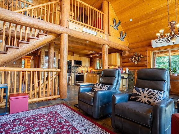Welcome to 9215 Kestrel Drive – a custom Norse Log Home on Marble Bay Mountain with sweeping Lake Cowichan views. Set on a private 0.64-acre lot at the Cottages, this 3-level, 2,792 sq. ft. home blends rustic craftsmanship with modern comfort. The main floor features vaulted ceilings, a bright kitchen with walk-in pantry, stone fireplace, dining area, bedroom, and full bath. Upstairs is a private primary retreat with vaulted ceiling, walk-in closet, and spa-like ensuite plus a loft landing. The lower level offers a family room with wood stove, bedroom, bath, and walk-out to a covered patio with hot tub. Enjoy wrap-around decks, multiple entertaining spaces, and lake/mountain vistas. A 27’ x 23’ insulated garage/workshop with bath and skylights adds versatility. Backing onto Marble Bay Park & Trail, owners also enjoy a private beach and picnic area. Perfect for year-round living or a family getaway in one of Vancouver Island’s premier recreational communities.