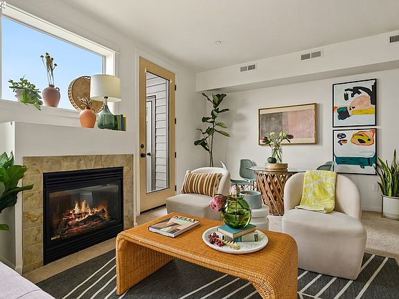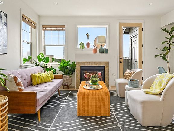 Live amongst the trees while still having easy access to the perks of city living! This two story townhome is modern and vibrant, with picture perfect views of Mt. St. Helens and the St. Johns Bridge. A great layout allows for optimal natural light, with an open, social floor plan. Snuggle up with your buddies in front of the gas fireplace, enjoy morning coffee on the balcony, and cozy up to the kitchen breakfast bar and make special meals with friends. Sleek granite counters and stainless steel appliances give fresh and contemporary vibes, and there's also a super handy half bath on this level. Convenient access from the attached garage through to the kitchen make unloading your groceries a breeze. All three bedrooms on the upper level - the primary with high vaulted ceilings, walk-in closet, ensuite bath, and a row of windows for magical views - and there's another full bath and laundry to round it out. Lots of space to live! Located just across the bridge from Cathedral Park, you'll enjoy unique localized access to Portland-famous Forest Park hikes, plus a hella easy commute to Nike, Intel, and downtown PDX. Pop over the bridge to enjoy the best of St. Johns: Urban German, Sparrow Bakery, Two Stroke Coffee, Naan + Curry, too many to name. Plus there's the seasonal events of farmers markets, Sauvie Island, Cathedral Park Jazz Festival, and the St. Johns Bizarre. You'll love this super adorable and spacious home in a fantastic location!