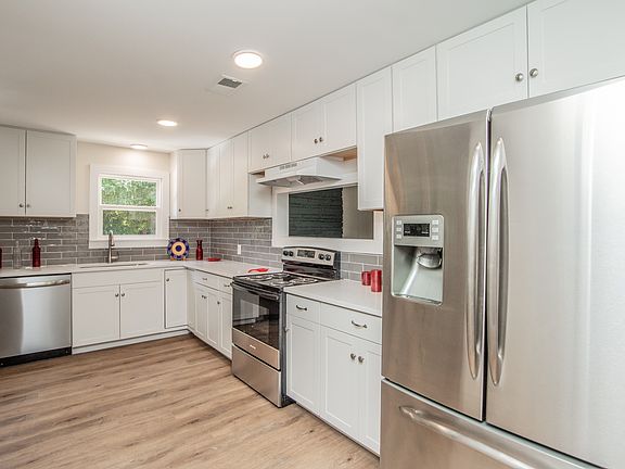 This house has been completely remodeled and includes new LVP flooring, new doors, toilet fixtures, stainless steel appliances, fresh paint, new cabinets and much more. It is conveniently located near I-485, shopping and the Whitewater Center. The large, shaded backyard offers privacy and a storage building. A private driveway provides easy and safe access off of the road. Gas heat will keep you warm in the winter and central A/C keeps you cool in the summer. The vacant land across the street is owned by the city and provides even more privacy.