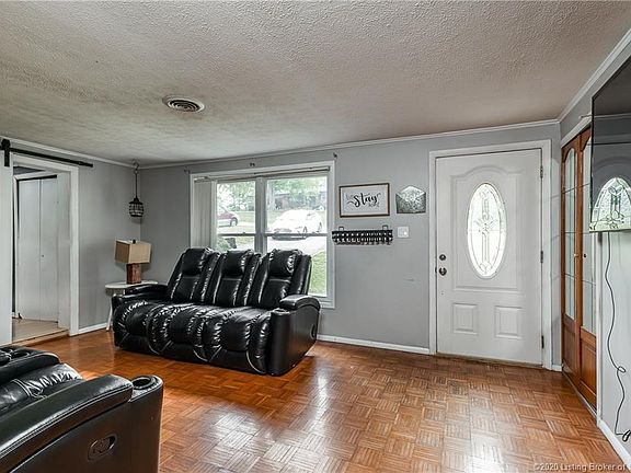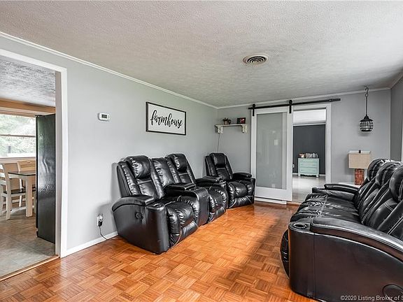 Attention 1st time home buyers, if you are wanting a home with some seclusion, but, need Floyd County school system & a hop, skip & jump to Louisville. Please make appointment to see this sweet home. Beautiful .80+ acre, last home on dead end that ends at a beautiful wooded area with a huge farm on the other side. There are gutter guards installed to insure that chore is cancelled. There is a deck outside the back door that has built in benches. The deck is 30'X18', you will love the serenity of the woods but also, large enough for lots of entertaining. There is also a fire pit right beyond the deck. The flooring in the home ranges from, vinyl plank flooring, parquet wood, & carpet. The windows are newer Anderson. There is a new sliding barn door that takes you from the living room to the enormous family room. The family room is 20' X 17' with a wood burning stove located on a nicely tiled hearth in a corner. There is also a sweet window seat in the family room. The sellers are currently using the den as a bedroom because it includes 2 closets. The kitchen includes room for a large 6 person table and a great built in closet pantry, tiled backsplash and laundry closet. There is a storage room right off the kitchen that will help you with storage & can be used as a mud room. With close to 1,500 sq. ft. you will have a nice sized home. Also, in 2019 was upgraded to a sewer/septic system maintained by city. Any serious buyers need to verify school systems, sq. footage, & taxes.