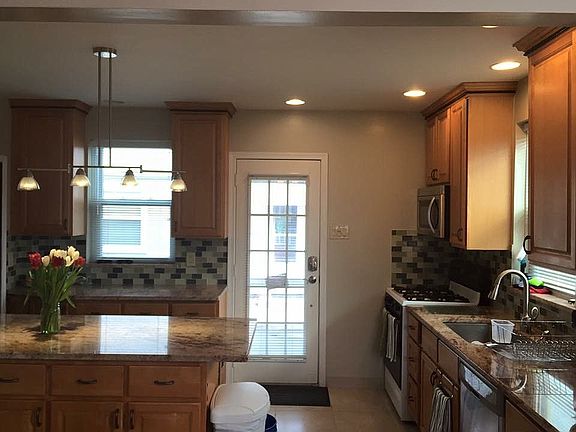 Pride of ownership shows in this inviting 3 bedroom, 2 Bath Brick Home. Living room and Dining area with wood flooring and neutral paint. Home lets in lots of natural light through out. Kitchen has been remodeled with over head lighting, many attractive cabinets, beautiful granite countertops, sizable ceramic tile flooring, and fresh neutral paint. Nice size Granite Island for extra seating. Both bedrooms on lower level have wood flooring and adequate closet space. Adjacent is a brand new full hall bathroom that was completely gutted and replaced (new plumbing and electric) stand up shower with spa shower head, 30' vanity, new toilet, neutral paint, and pocket door. Completing out the first level is a laundry/utility room. Upper level hosts one bedroom with skylights, new carpet, and plenty of storage space. Along with a remodeled full bath with ceramic tile. Spacious newly installed vinyl fenced in rear yard with concrete patio and covered pergola. Large driveway and 1 car detached garage. Windows have also been updated through-out. Brand new house roof/garage roof, HVAC unit and Electrical panel.
