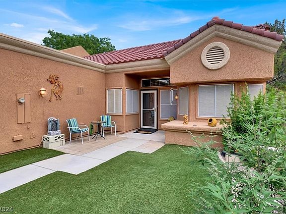 Welcome home to this meticulously maintained single story townhome, featuring 2 bedrooms, 2 bathrooms, a 2 car garage with a 3 season porch. This home is located in the socially active community of Sun City Summerlin! Other features include vaulted ceilings, tons of warm natural light throughout, solar screens & fresh paint inside and out of the property. The newly remodeled kitchen comes with upgraded wood cabinetry, newer appliances, quartz countertops, reverse osmosis and a breakfast nook over looking the front patio. Bathroom has an upgraded walk-in/sit-in tub. There are tons of indoor/outdoor living opportunities between the fully enclosed 3 season back patio to the front courtyard! Property is low maintenance and move in ready! Don't wait to schedule your private tour of this property as it wont last long!