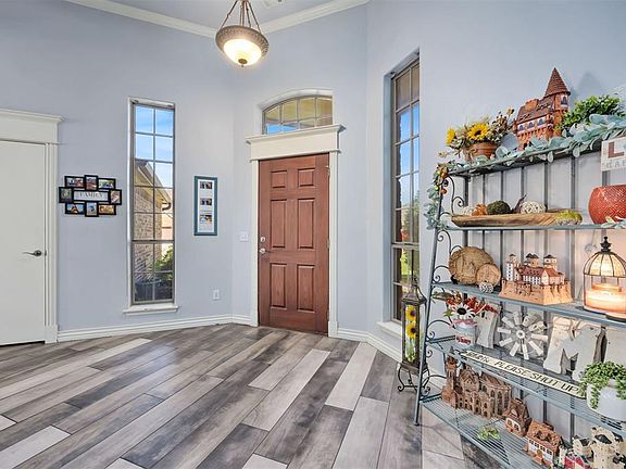 Welcome to this exquisite, fully remodeled home, offering an abundance of upgraded features and modern amenities. This spacious 4 bedroom 3 bath residence is designed with comfort and elegance in mind. Upon entering, you are greeted with an oversized living room with a cozy fireplace that has a blower for cold winter days. A new mantle and wood tile flooring. The kitchen is stunning and boasts a walk-in-pantry, a center island great for food prep, a gas stove framed by a beautiful arched brick and wooden beams that give the space a timeless charm. The large laundry room offers granite countertops, a sleek black granite sink and ample storage for convenience. Dining room has a built in hutch. Office space has built in bookcases, a desk and surround sound add to the inviting atmosphere. The home's custom theater room is a standout, complete with surround sound, recessed ceilings with dimmable lighting and a movie theater seating which remains with the home - an entertainer's dream! The expansive primary bedroom is a true retreat, offering 2 separate walk in closets, built in dresser, open shelving, an oversized walk in shower. Linen closets complete this luxurious suite. One of the bedrooms has unique touches like a suspended bed. Motion lights, security cameras, Solar screens enhance energy efficiency and protect the windows. Outdoors, you'll find numerous flower and garden beds, extended concrete on back patio and a 3 car garage with insulated doors and a storm shelter and epoxy flooring. Located in the highly sought-after Mustang School District. This home blends luxury, functionality, and safety seamlessly. Don't miss out on the exceptional property. Call today for a private showing!