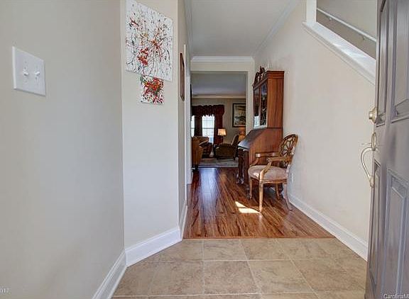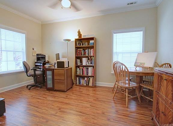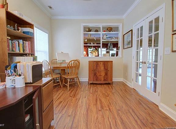 Attractive two story home located in highly sought after Berewick. Lush green lawn, sidewalk streets, covered front porch, low maintenance vinyl exterior, & 2014 screen porch. The sellers renovated the main level in 2013 with new pre-finished hardwood floors, French doors, & home office. The flexible GR layout boasts raised ceilings, crown molding, gas log FP, & 2" blinds. The eat-in kitchen offers tile floors, granite c'tops, SS appliances, gas stove, recessed lighting, center island, & pantry.