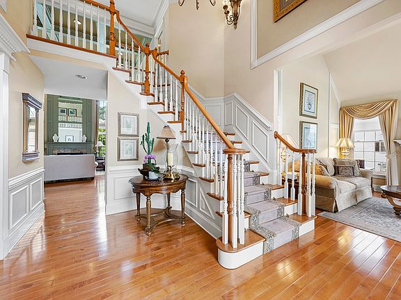 Welcome to the epitome of luxury living nestled along the prestigious 17th Hole of Brier Creek Country Club. This exquisite former model home boasts over 5700 square feet of opulent living space, meticulously crafted with the finest attention to detail. As you step through the grand entrance, you are greeted by the timeless allure of all-brick construction, setting the tone for the unparalleled elegance that awaits within. The foyer opens up to reveal a stunning two-story family room adorned with soaring ceilings, illuminated by cascading natural light that dances across the gleaming hardwood floors. A graceful catwalk spans the expanse of the family room, offering a breathtaking view of the main level and serving as a captivating focal point. Discover unparalleled comfort in the four spacious bedrooms, including an indulgent owner's suite conveniently situated on the main level. Unwind in luxury within the expansive walk-in closet, or pamper yourself in the spa-like ensuite bathroom featuring double vanities, a walk-in shower, and a lavish jetted whirlpool tub. Entertaining is elevated to an art form in this remarkable residence, with an array of sophisticated spaces to accommodate any occasion. Host guests in the formal dining room, gather for intimate conversations in the sitting area, or retreat to the loft area for quiet relaxation. The gourmet kitchen is a chef's dream, boasting high-end appliances, an expansive island, and an abundance of custom cabinetry. The lower level offers a haven for recreation and leisure, with a spacious game room, perfect for billiards or gaming enthusiasts, and an executive office for those who require a dedicated workspace. Endless possibilities await in the entertaining basement, complete with a wet bar and ample space for hosting gatherings of any size. Embrace the seamless fusion of indoor-outdoor living as you step outside to the sprawling deck, enveloped by lush landscaping and offering unparalleled views of the manicured greens of Brier Creek Country Club. With three-car garage, epoxy flooring, and abundant storage throughout, every convenience has been meticulously considered. Located just moments from premier shopping, dining, and the convenience of the airport, this exceptional residence offers the ultimate in luxury living with unrivaled comfort and convenience. Welcome home to an unparalleled lifestyle of sophistication and refinement.