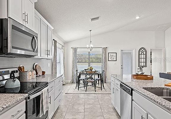 - Interior Features: Open Floorplan, Solid Wood Cabinets, Kitchen/Family Room Combo, Vaulted Ceiling(s), In Wall Pest System
