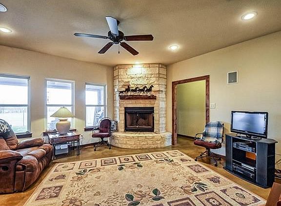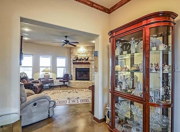 Beautiful custom home on great property! This home features chefs kitchen with built-in bakers cabinet, granite counter tops & great cabinet space W recessed lighting. Low maintenance stained concrete floors in house, patio & garage W central vacuum in home. Spacious 3 bedrooms including second master feat marble counter tops, shower & tub. Great MUD room W sink and built-in office area. Slab with plumbing and electric for shop! Horses welcome!