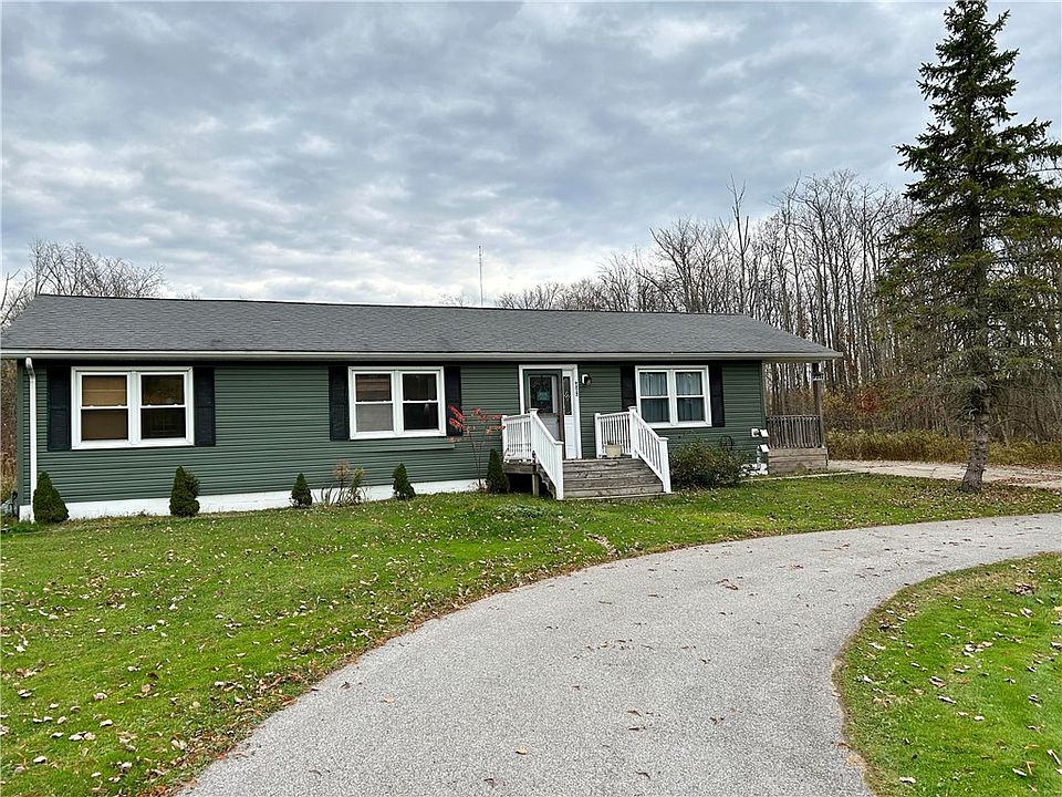 Great neighborhood community! Country ranch on 4 acres just 4 miles from Bayfront Connector. Open floor plan with 4 bedrooms, 2.5 baths, 2 pellet stoves, and a full basement. Newer roof and siding. 24 x 30 detached garage with wood stove. A hidden gem just waiting for the right owner to transform it into a dream home. This property is not part of the Greene Township Sewer Project.