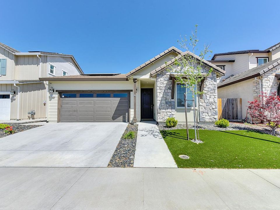 3-year-new Roseville home, No HOA! Zoned for brand new WestPark High School. Walk to future Elementary School & grocery store/shopping center planned for the next couple years within half a mile. Five houses down from Sullivan Park with built-in foosball table, cornhole boards and disc golf. Open-concept with huge kitchen island and beautiful pantry/bar. Refrigerator, Washer & Dryer included! SunPower solar has a purchase option, to continue the lease is $47.59/month. Custom plantation shutters, upgraded lighting, upgraded tile, concrete and artificial turf for low-maintenance. Still has sprinklers if you want to add drip plants or grass. Ceiling fans in all 3 bedrooms, wired for surround sound, Xfinity alarm hardware/door sensors included, tankless water heater, smart home with phone-operated HVAC thermostat, operate HVAC from anywhere! Set the A/C from your bed, or on your way home. Backyard and Master bedroom face North, shaded all day, keeping you cool!
