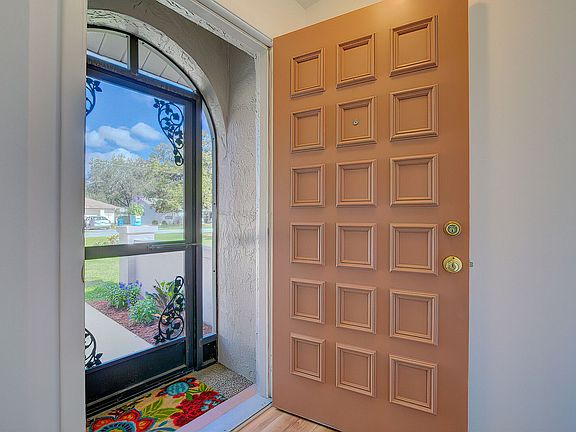 Move in ready! Covered screened entrance opens to foyer of newly remodeled 2 bedroom 2 bath home with over 1400 sf. of living space. Freshly painted inside and out. New carpeting and new waterproof solid vinyl plank flooring. Open eat-in kitchen with all new cabinets, new counter top, and new Frigidaire fingerprint-resistant stainless steel appliances. Remodeled master bath with dual sinks, tub/shower combo, new toilet, and linen closet. Second bath has tiled walk-in shower with new vanity and toilet. Master bedroom has 3 windows and walk-in closet. Ceiling fans throughout. Sliding glass doors from dining room and family room open to screened porch. Large fenced backyard with concrete patio. Plenty of room to add a pool. Oversize garage with laundry area and has lots of room for storage.