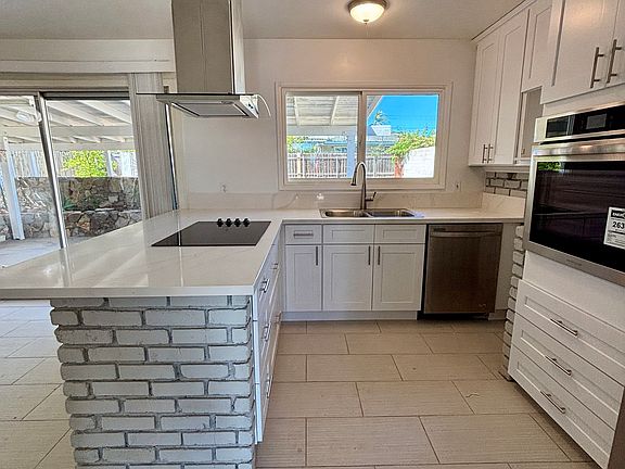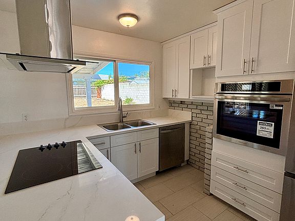 Great 3 Bedroom, 2 Bathroom with 2 car garage centrally located in Santee. Remodel kitchen just completed. Kitchen has brand stove, oven and newer refrigerator, separate dining room with new ceiling fan. Glass sliding door opens to covered patio and large backyard. The living room is cozy with a large wood burning fireplace to enjoy family entertaining. The property has dual paned windows throughout, central air and heat. Bathrooms have been remodeled. Brand new laminate flooring through out house. Kitchen and dining room have tile flooring. Ceiling fan in master bedroom. Washer and dryer hookups are located in the garage. Located close to Santee Lakes, shops and freeways. 1 Year
