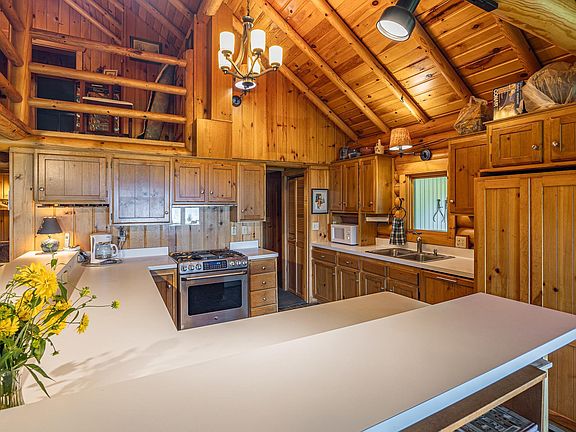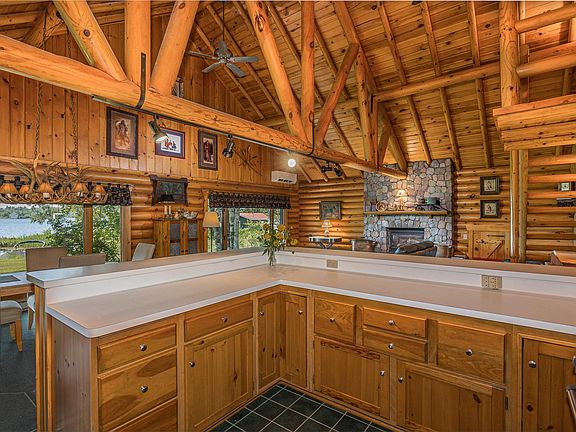 Kabekona Bay-The essence of log home living is captured in this 4BR/2BA Northwoods log home situated on a private 176' harbor lot with amazing views of Kabekona. Your picture window frames the outlot with excellent swimming and leads to two private staircases accessing your owned/leased slips. Upon entering the home, you will be impressed by the full field stone FP built by a legendary stone mason. The open floor plan gives way to two main floor bedrooms, a full bath, an office, main floor utility and enchanting 3 season porch. The loft features 2 more bedrooms, a full bath, loft and attic storage. The manicured grounds include blue spruce, birch, mature white/red pines, maples and oaks. Additionally, the lot is complemented by alpine currants, red twig dogwood and a plethora of floral touches. A 36'x36' detached double garage also has a side drive through overhead door. Grab your morning coffee or favorite beverage and take a leisurely ride around the lake or head over to thousands of acres on Leech Lake for all of your recreational needs.
