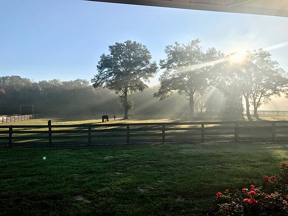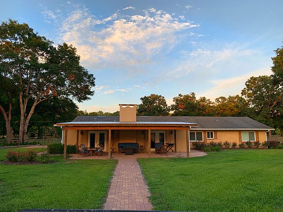 Elegance meets countryside charm at this perfect 5-acre farm. The 3-bedroom, 2.5-bath home is luxurious- the kitchen includes granite countertops, custom maple cabinets, stainless appliances, and breakfast bar. From the living room, enjoy the wood-burning brick fireplace or head out onto the covered patio for spectacular sunsets. The master suite is complete with walk-in closet and an en-suite that includes double vanities, walk-in shower, and a bidet. The active equestrian will enjoy the various amenities this property has to offer, including a center-aisle barn with 3 over-sized stalls, full bath with shower, feed/tack room, and washer and dryer hook-up. 6 paddocks are seeded with Argentina Bahia. Located conveniently close to Gainesville's shopping, dining, and health-care options.