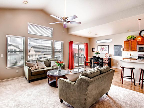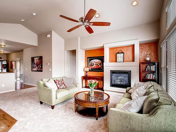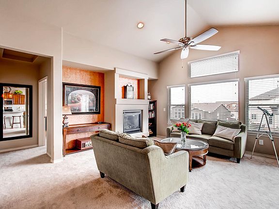 Enjoy main level living at its finest in Cordera with this walkout rancher with great views. Formal dining room with custom built-ins, spacious kitchen and dining nook opens to family room with gas fireplace and vaulted ceiling. Master suite includes bay window overlooking the back yard, 5-piece master bath, soaking tub and walk in closet. Walk-out basement is finished with huge family room, wet bar and gas fireplace also your junior master suite with built-ins and private bath. Two more additional bedrooms and a bathroom are also located in the basement and the main level features another office or 5th bedroom. 3 car tandem garage, tons of storage, rear deck, mudroom with utility sink, wood floors, new tile floors, fresh paint and new carpet.