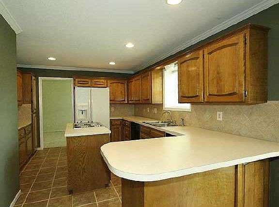 Newer carpet dwnstrs (1yr),ceramic entry,gas logs,ceramic flr in kit & laundry,island in kit,pull out drawers,hallway & mstr br entry to bath,extra vanity sink,crown moldings,walk in closets,zoned H&A,security sys,oversized garage,work sink & storage.
