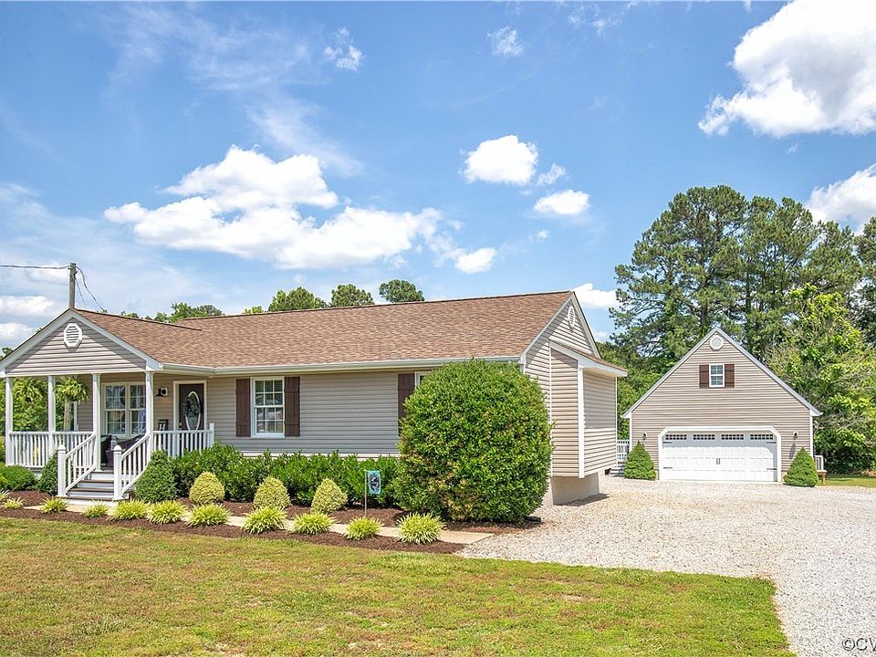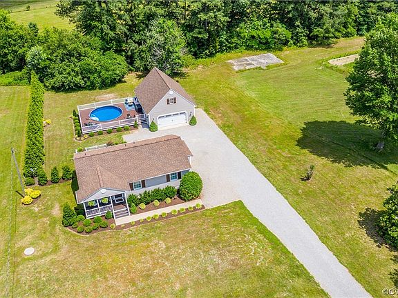 Move In Ready Rancher w/ 3 Beds, 2 Full Baths, Detached 2 Car Garage and Pool!!! As soon as you Arrive you will notice the Professional Landscaping and Newly Mulched Flower Beds. There are Laminate Hardwood Floors throughout the Home. The Eat In Kitchen is Open to the Living Room and Over Looks the Back Yard. The Primary Bedroom has an En Suite Bath with Shower and Ceramic Tile Flooring. There are 2 Additional Bedrooms as well as a Full Size Bath with Large Vanity and Tub/Shower Combo as well as Ceramic Tile Flooring. The Laundry Room also serves as a Mudroom and has Ceramic Tile Flooring. The Back Yard Space is Great for Entertaining. There is a Rear Deck as well as an 18ft Above Ground Pool with a Large Surrounding Deck and Bluetooth Down Light Speakers! Decks were also Recently Stained! The Large 25x30 Garage is Right Off of the Pool. It was Painted 1 Year ago and Fully Finished as well as an Insulated Garage Door was added. There is a Pull Down Attic Space in the Garage Providing Lots of Additional Storage Space. Off the Back of the Garage is a Covered Area which is Great for Storing Yard Equipment.
