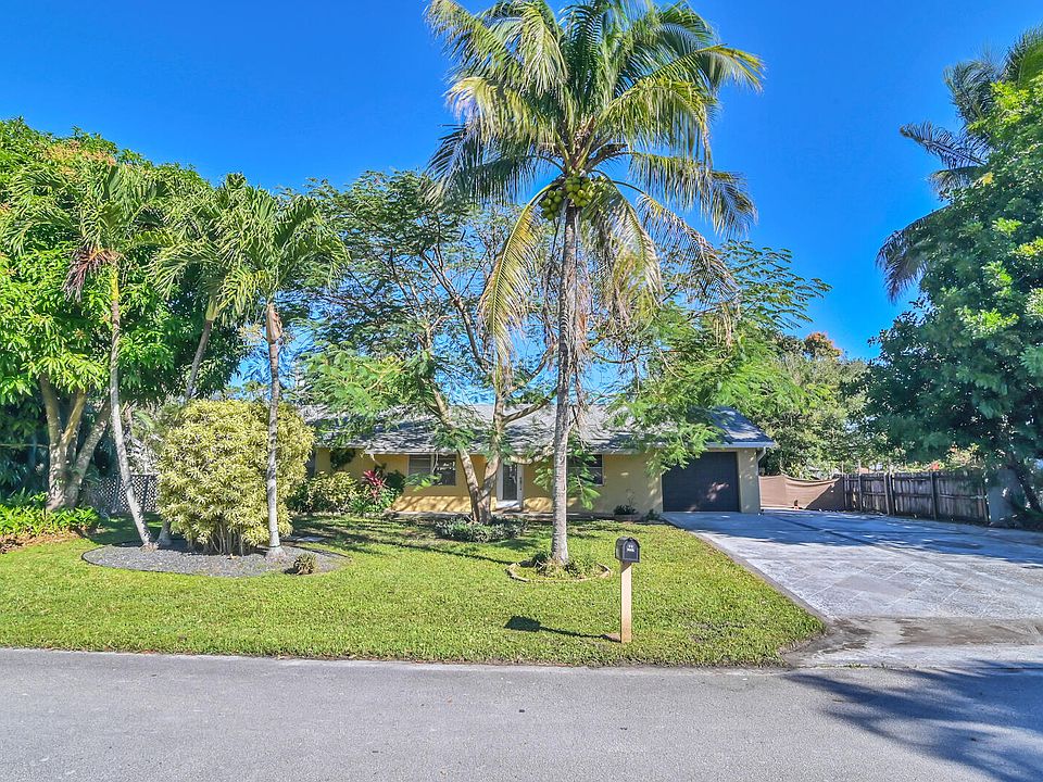 Welcome to your new haven in a delightful non-HOA neighborhood! This meticulously cared-for 3-bedroom, 2-bathroom home with an attached 1-car garage offers a unique charm and versatility. This property sits on a generous .25-acre lot adorned with mature shade trees and delightful fruit trees including mango and banana.Nestled at the end of a tranquil dead-end street, enjoy the serenity and privacy this location affords. The extended double driveway provides ample parking space for all your needs. With just under 1,900 square feet of living space, this home exudes warmth and comfort. Entertain effortlessly on the extra-large back slab patio, providing ample room for the entire family to gather and create lasting memories. Discover the added bonus of a 4th bedroom with a private entrance, adding a touch of versatility to this already impressive property.