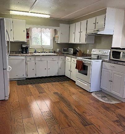No HOA No Lot Rent You own the Land. This home started as a manufactured home has had several additions including the Garage and upstirs that includes a loft ,master bedroom and bath. The kitchen boasts lots of counter, cabinets pantry and nook Plus a dinning room. The Family room will be a great entertainment area. Bedroom, Office, Bath and Laundry all on the main floor. On the outside you will find an inviting enclosed yard perfect for a pet or just a nice day outside. The front porch is all mauntance free Parking is a breeze with the one car garage and a driveway for two. It also includes a generator and 2 sheds.