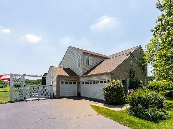 The home you have been waiting for has officially come to market!! Truly amazing, just under 1-acre property located on a quiet private cul-de-sac location. Open space and beyond! Sharp two-story foyer, 1st floor boasts maple flooring throughout and upgraded white doors and trim. Separate living room, dining room, and good size 1st-floor laundry room. Large eat-in kitchen with Quartz countertops, copper farm sink, maple cabinets with 42 uppers, and glass backsplash. Generously sized family room off kitchen area with corner gas start fireplace with instant carefree heat. Slider off eating area leads to an oversized concrete patio with a paver sitting wall, hot tub, classic pergola, and all overlooking one of the best-kept secrets in Mchenry County - The Marengo Ridge Golf Club! Large master suite with vaulted ceiling, walk-in closet, and private bath with separate tub and full-size shower. second-floor loft can be used as an entertaining space, home office, or convert back to fourth (4th) bedroom. Full unfinished 1,290 square foot basement area could only add to the potentially usable space of this home! Three (3) car attached garage with epoxy flooring. Newer roof and maintenance-free exterior. Minutes to the new I90 interchange for quick EZ tollway access. Do I need to say more? #letsdothis