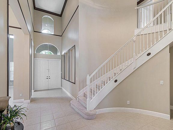 Beautiful Mediterranean inspired estate home with that ''wow'' factor you are looking for! Sure to impress soaring 20 ft. ceilings and grand spiral staircase! Large living room and dining room is open to the white island kitchen. Large master suite w/ sitting room on the ground floor. Loft and 3 additional bedrooms upstairs! (loft could be another bedroom). Pool and large paver patio outside and a garden view for total privacy. 3 car garage (Tandem space inside garage fits 2 cars back-to-back). Perfect location close to Turnpike, airport & downtown West Palm Beach - shorten your commute!