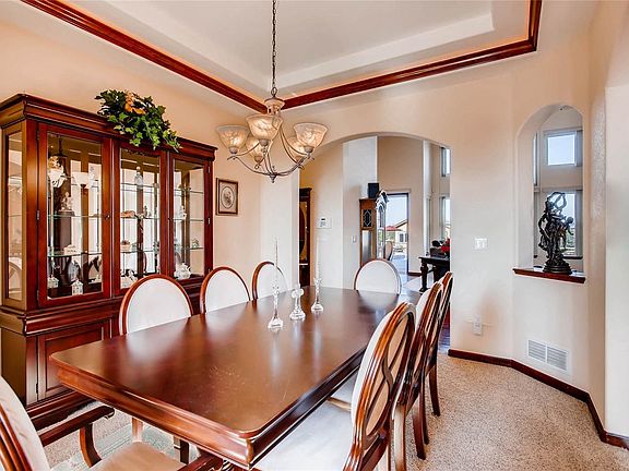 You will fall in love with this stunning custom ranch home featuring 4 spacious bedrooms, 5 bathrooms, office with french doors, and large laundry room on the main level. Spectacular mountain views from the Great Room and Master Bedroom will take your breath away.You will love cooking and entertaining in your huge gourmet kitchen with double ovens and high end touches overlooking your formal dining room. This unique home features a Mother In Law Suite in the basement with a full kitchen, theater room, two huge bedrooms and 2 bathrooms. Perfectly situated on over 1/2 an acre this pristine backyard has it all. Imagine swimming in your own private pool on a hot summer day and showering off in your cabana. Enjoy a BBQ poolside on the covered patio complete with a built in fire pit. Wonderful location only 45 minutes to DIA and close to Saddleback Golf Course. New Roof & Exterior Paint! Be sure to view the virtual tour by clicking on the movie reel icon located just under the pictures!