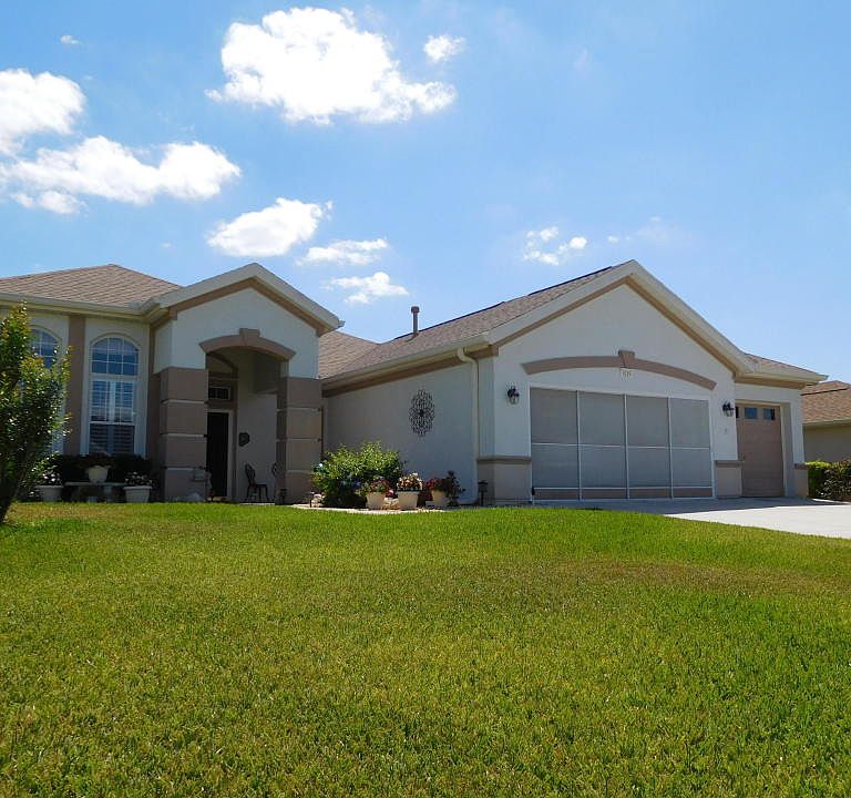 WELCOME TO THIS WELL MAINTAINED BLOCK AND STUCCO SANIBEL MODEL HOME. THE HOME FEATURES 3 BEDROOMS, 2 BATHS, EXTENDED 2 CAR GARAGE PLUS GOLF CART GARAGE AND HEATED POOL! THE PAVER WALKWAY TAKES YOU TO A FRONT GLASS ENTRY DOOR. INSIDE TO AN OPEN FLOOR PLAN, GLASS FRENCH DOORS THAT LEAD TO AN ENCLOSED 10X28 LANAI. THE SLIDER WINDOWS THEN OPENS UP TO THE BIRDCAGE SURROUNDING YOUR OWN SWIMMING POOL WITH WATER FALL AND SOLAR PANELS FOR HEATING. WHAT A RETREAT!! THIS HOME HAS IT'S OWN WELL FOR THE LAWN AND POOL. THE ROOF WAS RE-SHINGLED IN 2014, A/C REPLACED IN 2010, WATER HEATER IN 2015. THERE IS TILE THROUGHOUT EXCEPT THE BEDROOMS. BONUS, OFFICE ROOM WITH BUILT-IN DESK AND CABINETS. THE HOME HAS PLANTATION SHUTTERS, KITCHEN WITH UPGRADED CABINETS THAT EXTEND INTO THE EAT-IN AREA WITH NEUTRAL