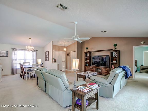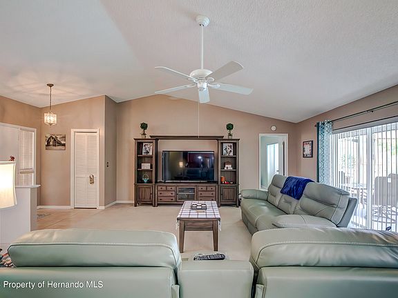 Dive into luxury living with this stunning pool home nestled in the heart of Spring Hill! Spanning 1615 sq.ft., this 2-bedroom, 2-bathroom sanctuary offers an unparalleled blend of comfort and style. Step inside to discover a spacious great room with vaulted ceilings, seamlessly flowing into a separate dining room, perfect for entertaining guests. The well-appointed kitchen boasts sleek cabinets with an extensive pull-out shelving system, complemented by both a range and a separate built-in oven. Retreat to the owners' suite, where luxury awaits with a double vanity, custom built-ins in the closets, and a pocket door ensuring privacy in the en-suite bathroom. Embrace outdoor living at its finest in your private oasis, featuring an inviting in-ground pool, an oversized spa with a new motor, and pocketing sliding glass doors leading out onto the lanai, offering breathtaking views of the pool area. With wood laminate flooring in the kitchen and dinette area, plush carpeting in the bedrooms, and tile in the bathrooms, every inch of this home exudes comfort and sophistication. Additional highlights include a 2-car garage, tastefully landscaped grounds with a storage shed, a new drain field installed in December of 2021, A/C 2016 and a roof installed in 2008. Don't miss out on this exceptional opportunity to own the pool home of your dreams!